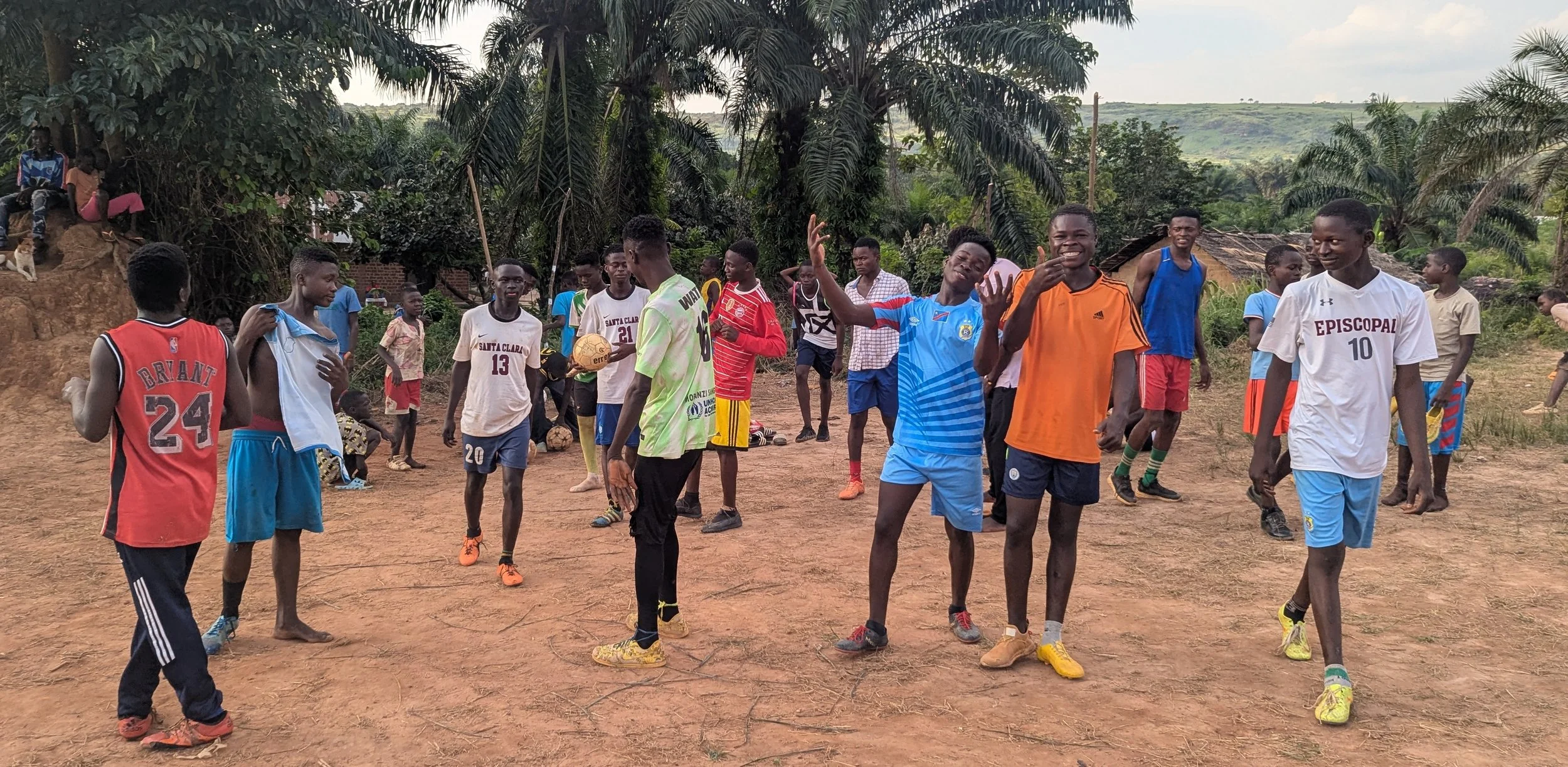 Micheline observes as the children dive into soccer practice, their laughter echoing across the field.