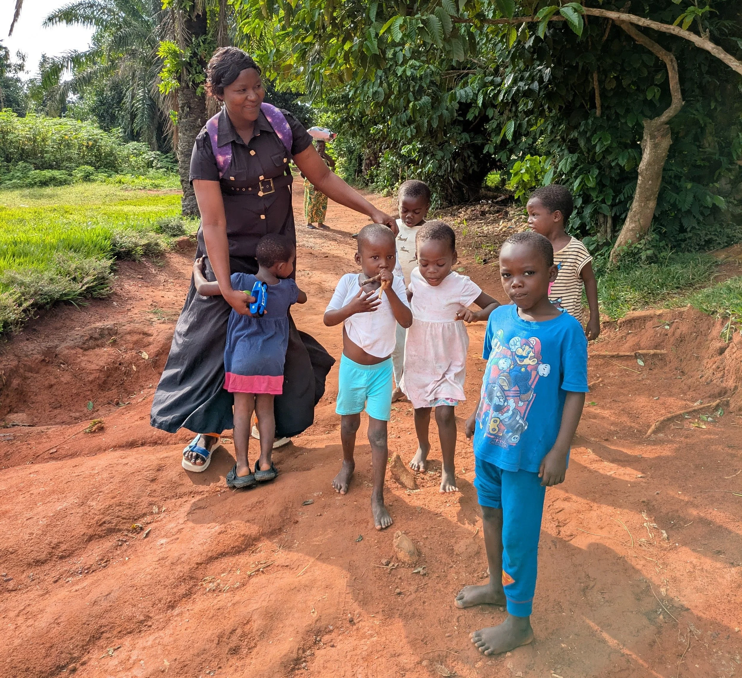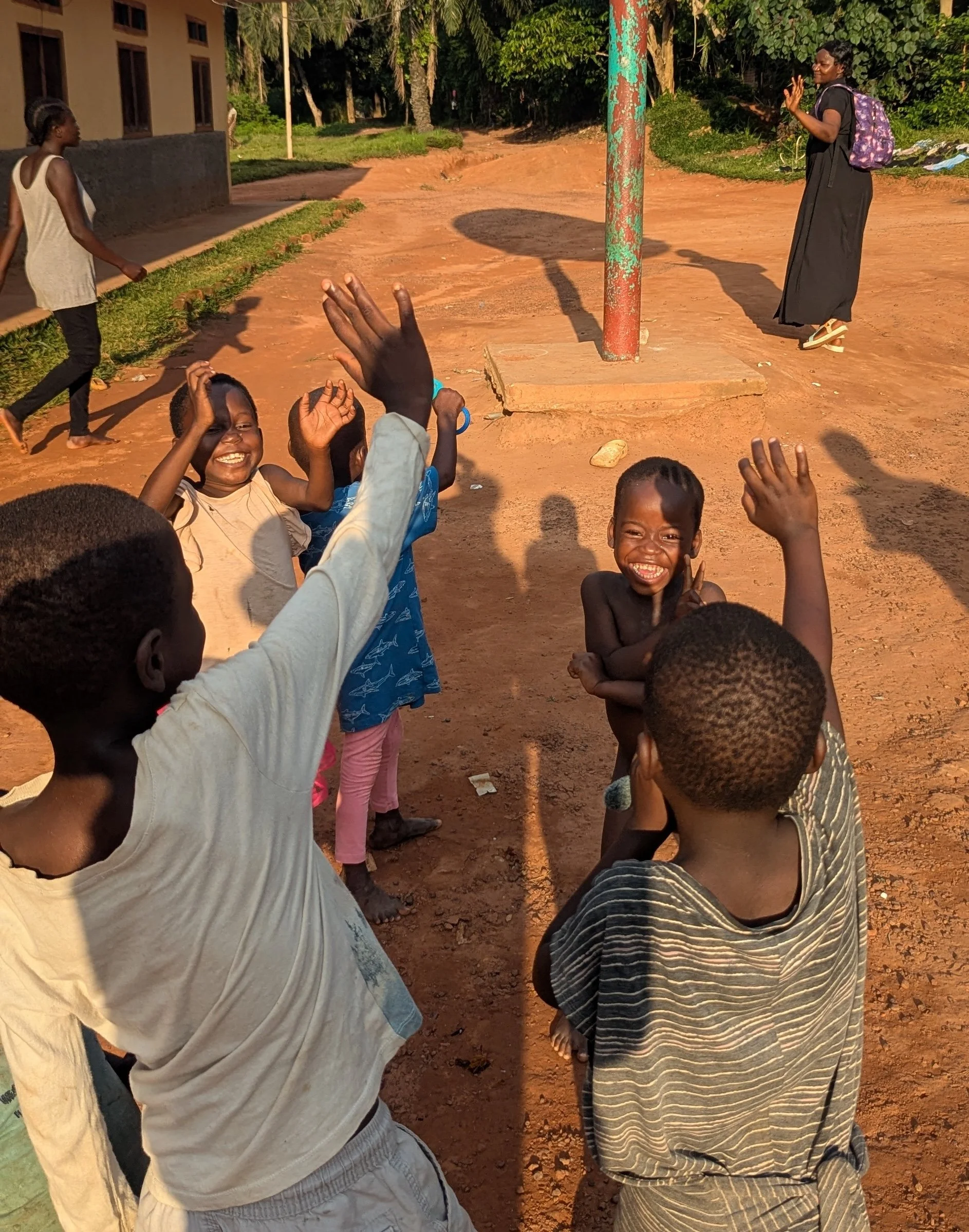 As the sun begins to set, Micheline waves goodbye to the children, her heart full as she heads home to her own children. What's not pictured is the many nights she comes to check on the children late in the evening.
